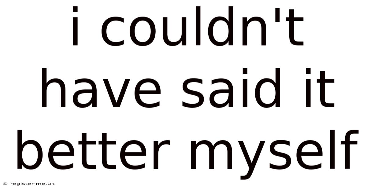 The phrase "I couldn't have said it better myself" is more than just a compliment—it's a recognition of the power of words to connect, inspire, and validate. Day to day, whether in personal relationships, professional settings, or creative endeavors, this phrase speaks to the universal human desire to be understood and to find words that perfectly capture our thoughts. By acknowledging the skill and authenticity of others, we not only encourage deeper connections but also celebrate the enduring power of language to shape our reality.