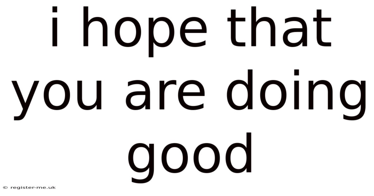 "I hope that you are doing good" is far more than a simple filler phrase. And it's a versatile tool for social interaction, a vehicle for expressing care, and a fundamental element of polite communication in many English-speaking cultures. Think about it: understanding its literal meaning, appreciating its cultural variations, recognizing the importance of sincere delivery, and knowing the appropriate contexts for its use empowers individuals to communicate more effectively and build stronger, more empathetic connections. Whether exchanged among friends, colleagues, or acquaintances, this phrase serves as a small but significant reminder that we care about the well-being of others, fostering a sense of shared humanity and connection.