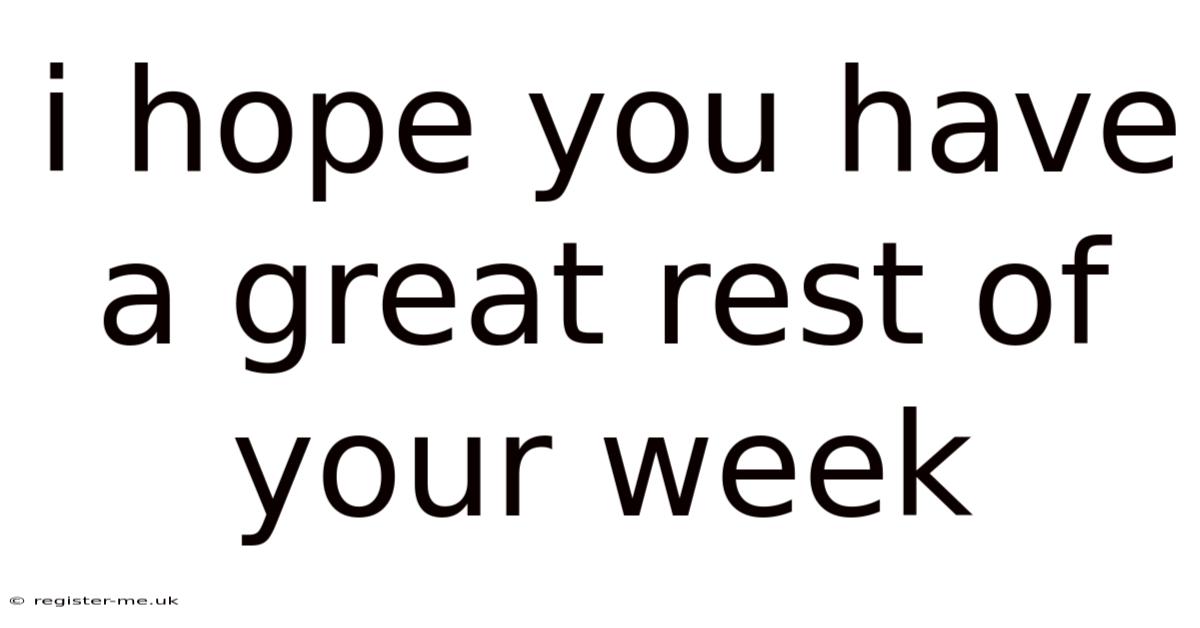 I hope you have a great rest of your week. Today, we walk through a simple yet powerful thought that can uplift your spirit and set a positive tone for the days ahead. Plus, the phrase I hope you have a great rest of your week carries more than just words—it conveys care, encouragement, and a desire for balance in your life. Understanding the importance of rest is essential for maintaining both mental and physical well-being, especially in today’s fast-paced world And that's really what it comes down to..
