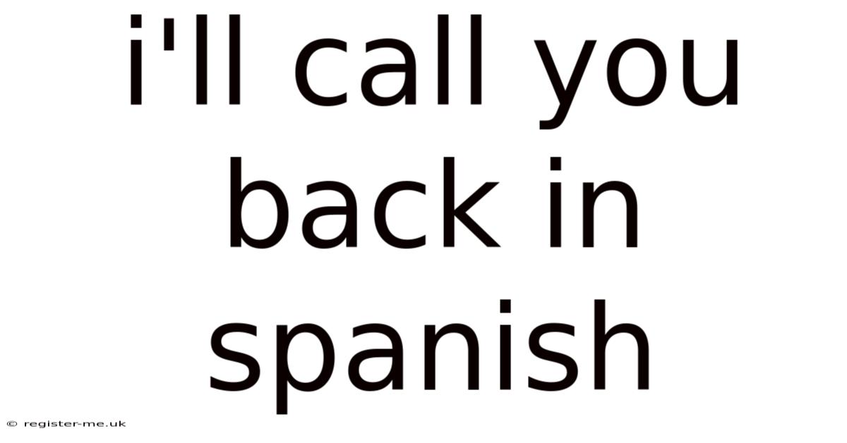 Phone conversations in Spanish-speaking cultures often carry a distinct rhythm compared to English. Plus, while the core message remains the same, the way you structure your response can signal respect, familiarity, or professionalism. Knowing how to politely defer a conversation shows linguistic maturity and cultural awareness. When you learn to deal with these interactions smoothly, you build stronger relationships and avoid misunderstandings that often arise from direct, word-for-word translations. The phrase I'll call you back in Spanish is not just a single sentence; it is a gateway to understanding how Spanish speakers manage time, availability, and social boundaries during verbal exchanges. By approaching phone etiquette with intention, you demonstrate that you value the caller’s time while maintaining your own boundaries And that's really what it comes down to. Turns out it matters..