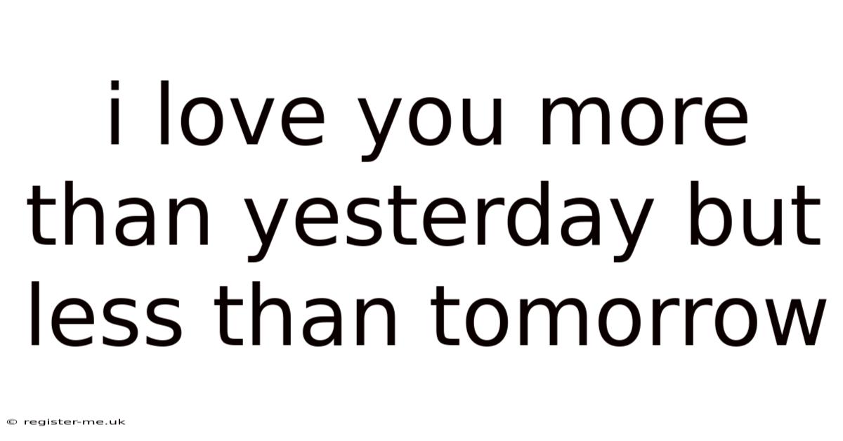 Love is rarely a static line; it is a gently curving trajectory that, when tended to, rises higher with each sunrise. Which means the saying “I love you more than yesterday but less than tomorrow” captures that elegant truth: love is both a reflection of what has already been nurtured and a promise of what is yet to blossom. By embracing daily micro‑gestures, intentional communication, shared growth experiences, and personal self‑care, couples can check that the curve never flattens No workaround needed..