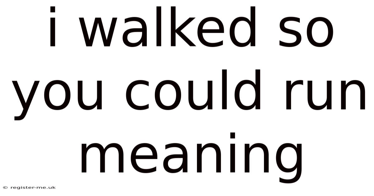 The phrase "I walked so you could run" has transcended its simple, literal meaning to become a powerful cultural mantra. Because of that, it echoes in social media bios, graduation speeches, protest signs, and personal conversations. So at its surface, it describes a sequential action: one person moves at a slower pace to allow another to move faster. Yet, its true power lies in the profound layers of sacrifice, legacy, empowerment, and generational progress it encapsulates. This expression is not about a single transaction but about the involved, often unseen, architecture of opportunity that allows others to achieve greater speed, height, and freedom. Understanding its full meaning requires exploring its historical roots, psychological impact, and its vital role in shaping a more equitable future.