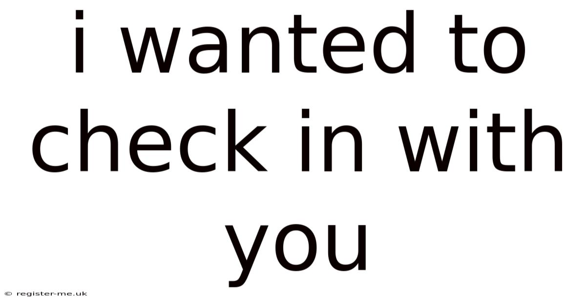 In today’s fast‑paced work environment and socially connected world, the simple phrase “I wanted to check in with you” has become a powerful tool for maintaining relationships, boosting productivity, and fostering psychological safety. In practice, whether you’re a manager reaching out to a remote team member, a colleague offering support, or a friend catching up after a long hiatus, this sentence signals genuine interest, accountability, and empathy. By understanding the purpose, timing, and best practices behind the check‑in, you can transform a routine interaction into a meaningful conversation that strengthens trust and drives results Nothing fancy..