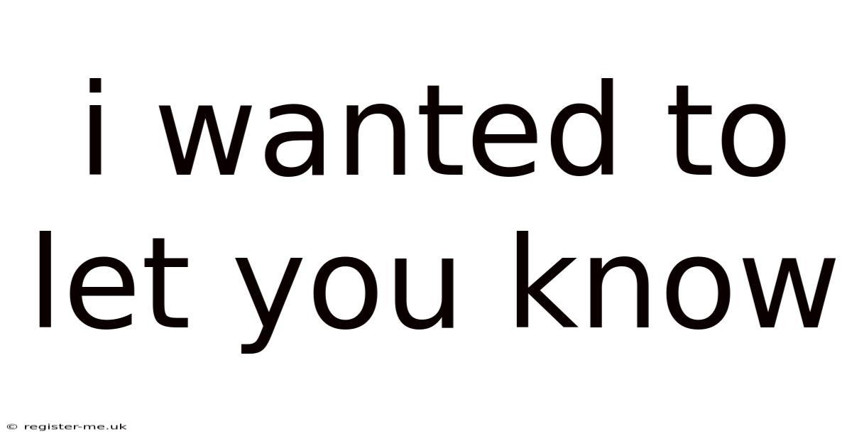The phrase "I wanted to let you know" is more than just polite filler. It serves several important functions: