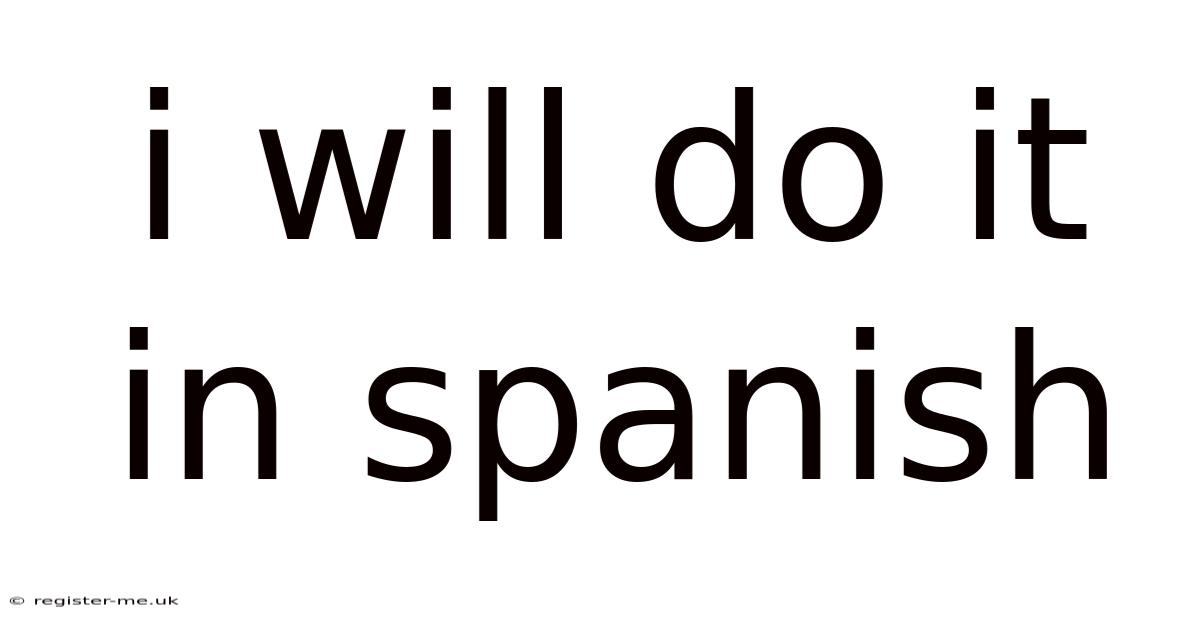 Learning how to say I will do it in Spanish is one of the most practical steps you can take toward conversational fluency. Whether you are committing to a task, making a promise, or simply planning your next move, mastering this phrase opens the door to confident communication. In Spanish, the translation depends on context, regional preferences, and the level of certainty you want to convey. This guide breaks down the exact translations, grammatical structures, and real-life usage so you can speak naturally and accurately in any situation Took long enough..