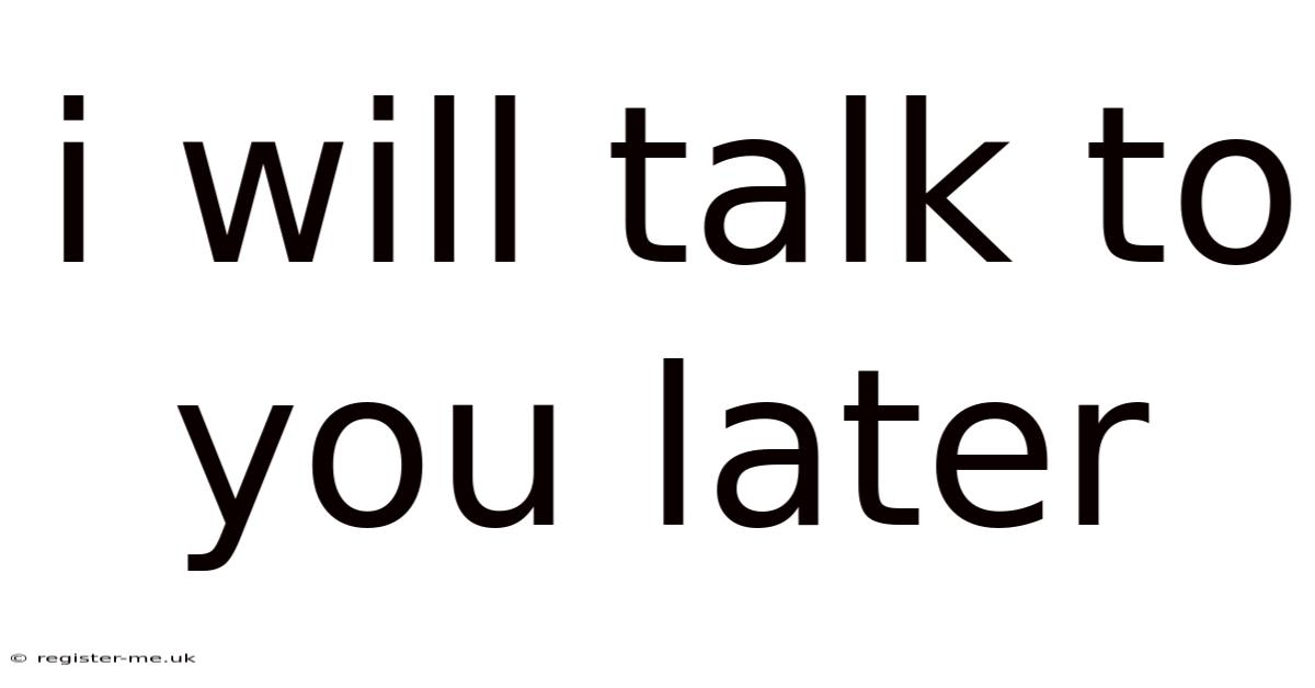 In our fast-paced digital world, the phrase "I will talk to you later" has become a ubiquitous part of our communication landscape. Because of that, this seemingly simple statement carries significant weight in both personal and professional relationships, serving as a conversational bookmark that signals the temporary conclusion of an exchange while leaving the door open for future connection. Understanding the nuances, implications, and proper usage of this common farewell can dramatically improve your communication effectiveness and relationship management skills.