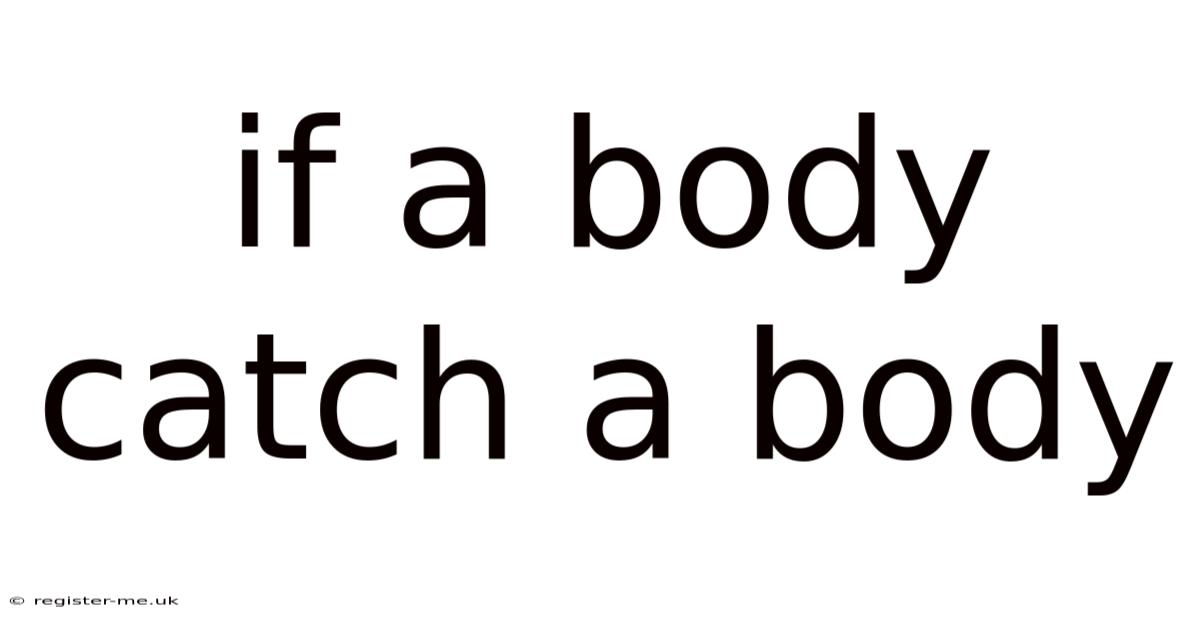 If a Body Catch a Body is a phrase that evokes curiosity, mystery, and often a sense of urgency. Whether encountered in literature, legal contexts, or everyday scenarios, the concept of one body coming into contact with, or being caught by, another body carries significant implications across various disciplines. This discussion gets into the physical, biological, legal, and ethical dimensions of such encounters, exploring the conditions under which they occur and their multifaceted consequences.