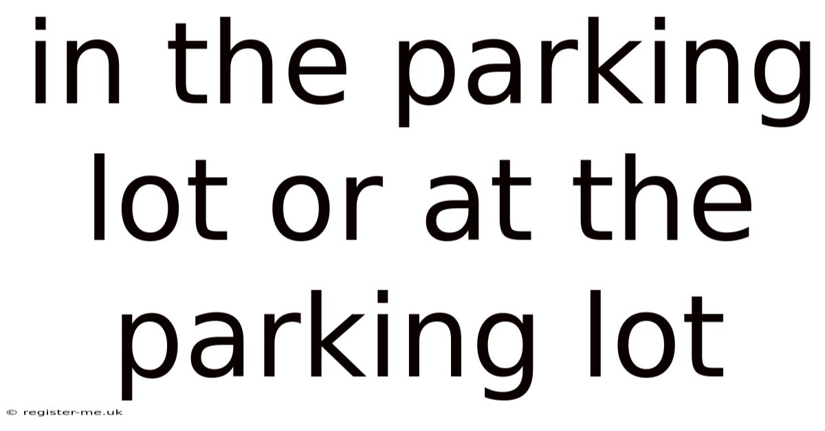The simple act of parking a car introduces one of English grammar’s most common and subtle dilemmas: should you say you are in the parking lot or at the parking lot? Mastering this nuance elevates your communication from understandable to impeccably clear, whether you’re giving directions, describing a scene, or writing a story. Also, for native speakers and learners alike, this distinction often causes hesitation, as both phrases sound plausible. The difference isn't about right or wrong in an absolute sense, but about the specific spatial relationship and context you intend to describe. This tiny preposition choice can feel arbitrary, yet it carries significant weight in conveying precise meaning. This article will dissect the logic behind “in the parking lot” and “at the parking lot,” providing you with a definitive framework to choose the correct phrase every time, supported by clear examples and explanations of common pitfalls Worth keeping that in mind..