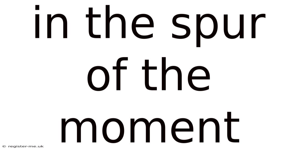 In the spur of the moment, decisions are made without prior planning or extensive deliberation. This phrase captures the essence of acting spontaneously, driven by immediate feelings, impulses, or unforeseen circumstances. That's why it signifies a departure from calculated, premeditated actions, often characterized by a sense of urgency, passion, or reaction to a sudden stimulus. While sometimes viewed as reckless, acting "in the spur of the moment" can also be a source of creativity, genuine connection, and authentic expression. Understanding this concept involves exploring its psychological roots, its potential benefits and pitfalls, and how to harness its power effectively Simple, but easy to overlook. Turns out it matters..