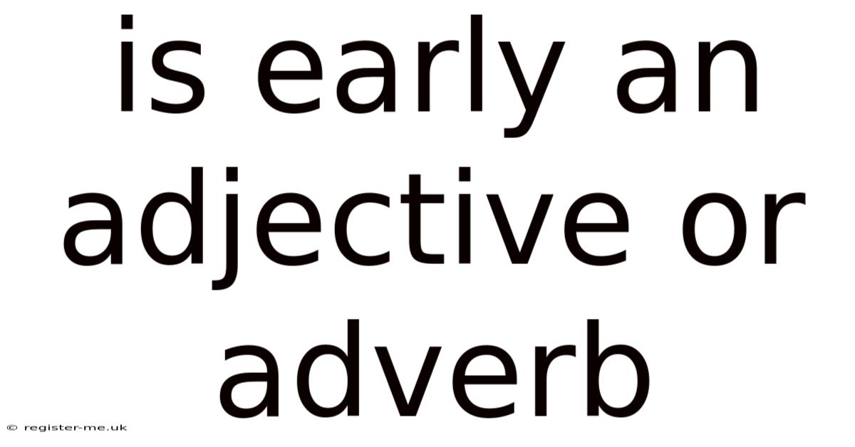 The answer to "Is early an adjective or adverb?It demonstrates the fluidity of English grammar. Even so, mastering this distinction enhances your precision in writing and speaking, allowing you to convey timing information accurately and effectively, whether describing a noun's characteristic or the timing of an action. Day to day, by carefully examining the word's relationship to the noun (adjective) or verb/adjective/adverb (adverb), you can confidently determine its function. " isn't a simple "yes" or "no.In real terms, " "Early" is a functional word whose role depends entirely on the sentence structure and what it is modifying. Remember, context is your ultimate guide in navigating the dual nature of "early.