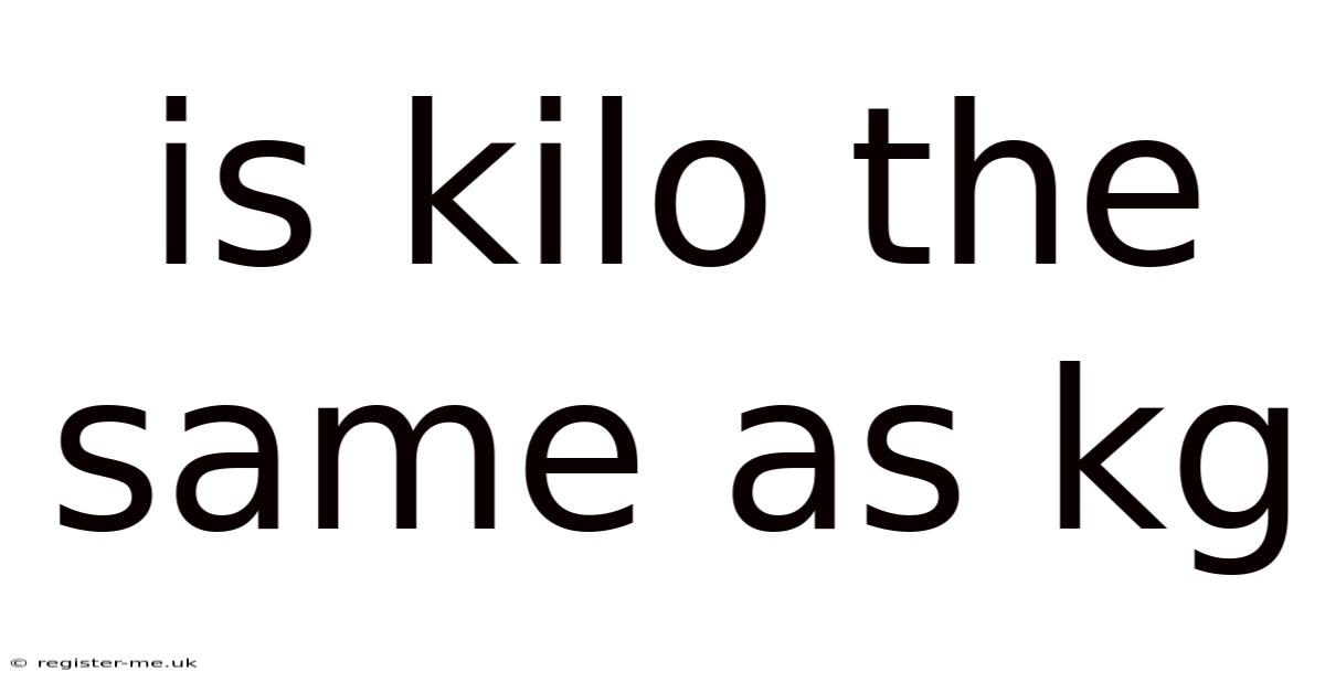 The fundamental question that often lingers in everyday conversations revolves around the distinction between "kilo" and "kg.While "kilo" is a prefix derived from Greek kilo- (meaning thousand), its application as a unit of measure has evolved over time, often leading to confusion when encountered alongside the abbreviation "kg," which stands for kilogram—the foundational unit of mass in the metric system. This article looks at the intricacies of these units, exploring their origins, applications, and the practical implications of their usage. " These terms, though seemingly simple, sit at the intersection of language, precision, and cultural context, demanding careful consideration to avoid misunderstandings. Think about it: in many contexts, "kilo" may evoke associations with large quantities, such as kilograms of water or kilo tons, while "kg" remains a compact yet precise term. Yet, the nuances between the two terms reveal deeper insights into how societies define and communicate value. Understanding this relationship is not merely about numerical equivalence but about grasping how language shapes our perception of scale and measurement. By examining their roles in science, commerce, and daily life, we uncover why clarity in terminology matters not just for accuracy but for fostering trust and comprehension across diverse audiences Not complicated — just consistent. Still holds up..