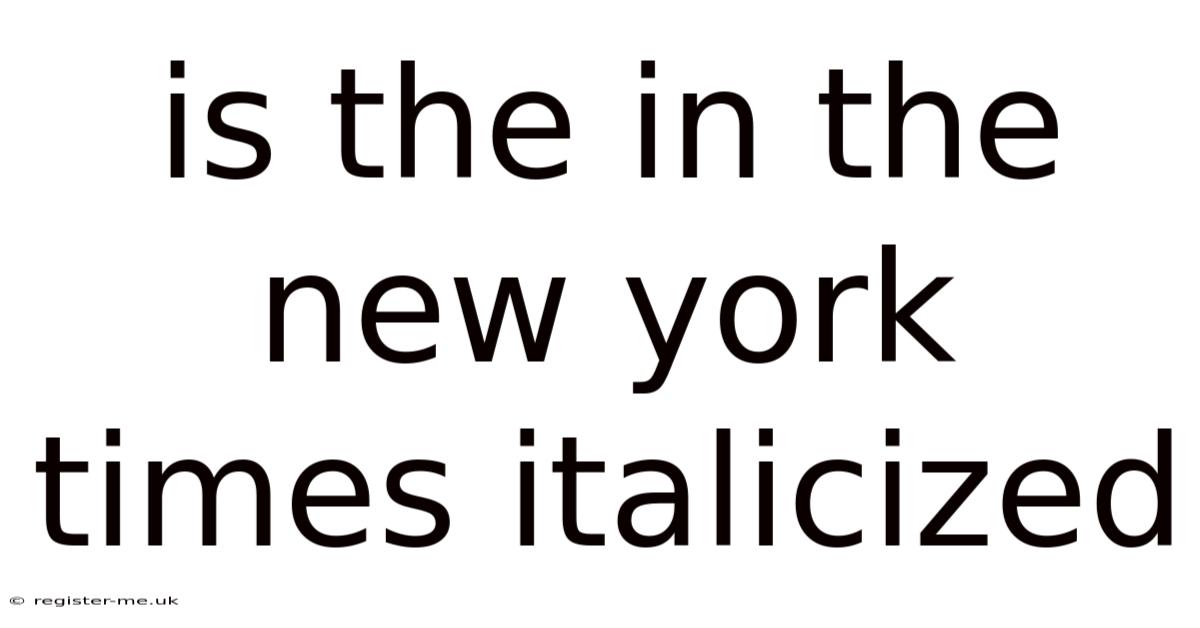 The question “*Is the “the” in The New York Times italicized?” may seem trivial, but it opens a window onto the broader world of newspaper style, branding, and the subtle rules that guide how we read one of the most recognizable names in journalism. Plus, understanding the answer requires a look at the New York Times’ own branding guidelines, the history of newspaper typography, and the practical reasons why certain elements are emphasized—or not—on the page and in digital media. In this article we will explore the official usage of The in the masthead, the evolution of its typographic treatment, the role of the Associated Press (AP) stylebook, and the common misconceptions that lead many writers and designers to wonder whether the definite article should be italicized. By the end, you’ll have a clear answer and the confidence to apply the correct format in any context, from academic citations to blog posts and social media mentions It's one of those things that adds up. Worth knowing..
