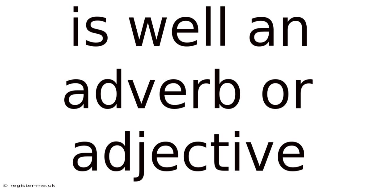 When we hear the word well, we often picture a health‑related context: “I feel well,” or “She drinks well.Even so, because of this versatility, learners frequently ask, *“Is well an adverb or an adjective? ” Yet well can also describe a quality (a well idea), indicate a degree (He ran well), or even function as a verb (She will well the wound). ” The answer is that well can be both, depending on how it’s used in a sentence Easy to understand, harder to ignore..