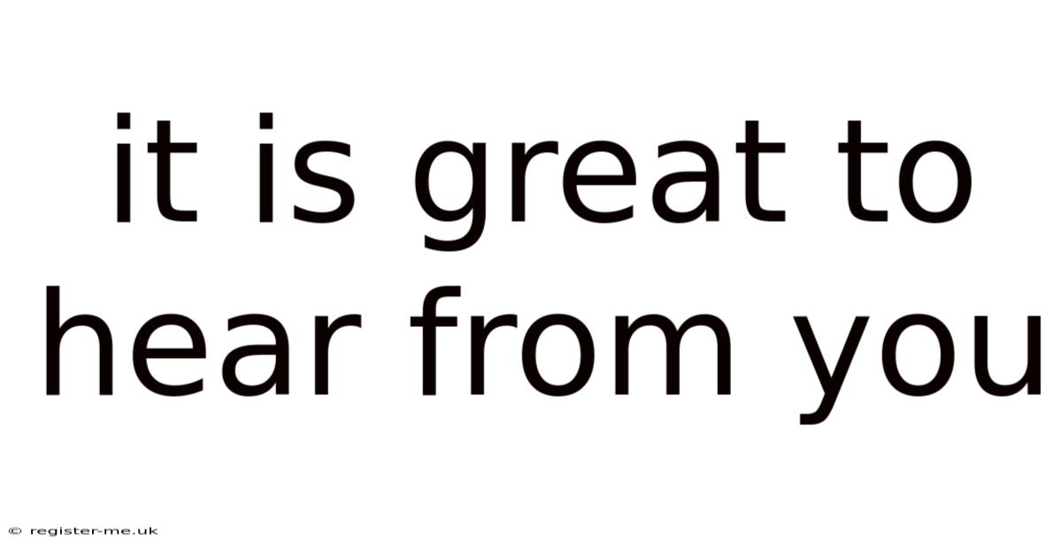 It is great to hear from you functions as both a bridge and a mirror. In professional settings, it sets a collaborative tone. Worth adding: as a mirror, it reflects respect, acknowledgment, and emotional availability. That said, as a bridge, it links past interactions to present moments, reminding both sides that continuity exists. In personal exchanges, it validates care and mutual interest. This phrase is not filler but a strategic tool that aligns intention with impact The details matter here..