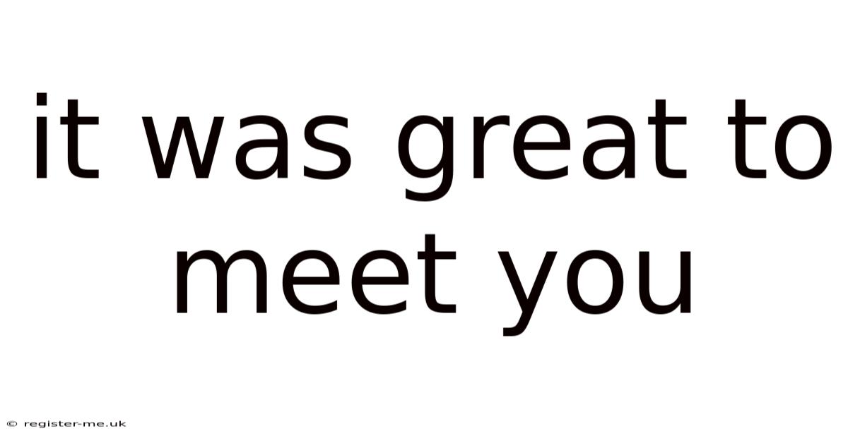 It Was Great to Meet You