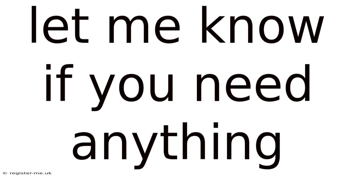 Letme know if you need anything: a guide to turning a simple phrase into a powerful communication tool In today’s fast‑paced world, the ability to convey support, openness, and willingness to help can make the difference between a fleeting interaction and a lasting relationship. The phrase let me know if you need anything may appear modest, yet when used intentionally it serves as a bridge that connects people, builds trust, and encourages collaboration. This article explores why the expression matters, how to embed it naturally into everyday dialogue, and the psychological benefits it brings. By the end, readers will have a clear roadmap for turning a routine offer of assistance into a catalyst for stronger connections, whether in personal friendships, professional teams, or customer‑service environments.