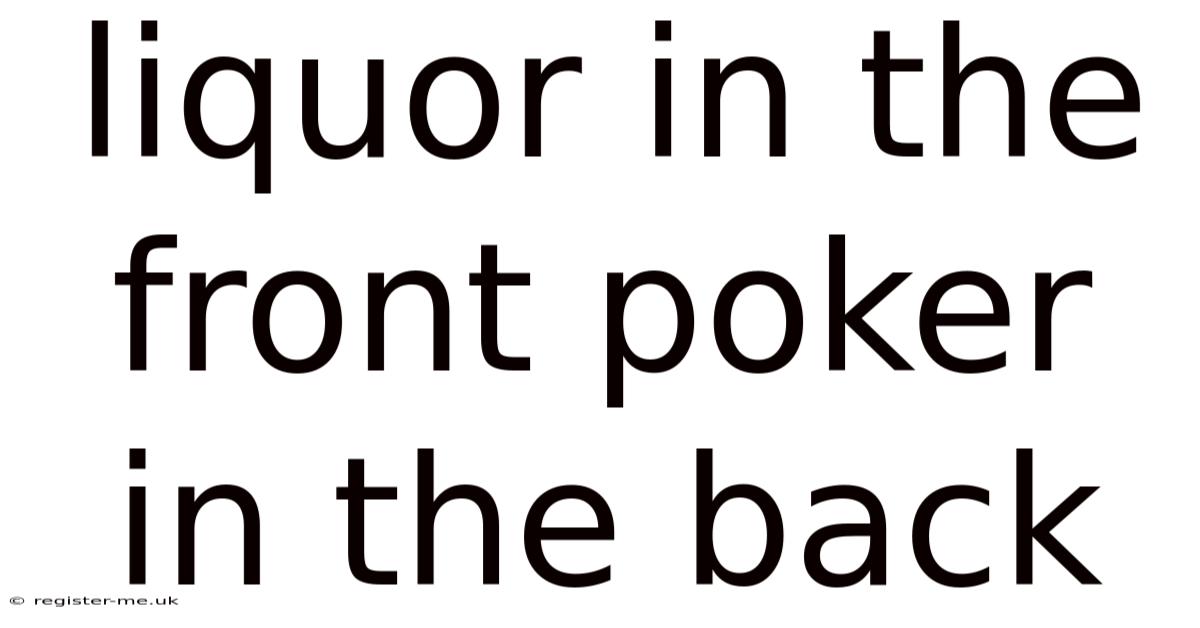 The phrase “liquor in the front poker in the back” might sound like a whimsical or even contradictory concept at first glance. On the flip side, when unpacked, it refers to a specific type of social or recreational setting where two distinct elements—liquor consumption and poker games—are spatially or thematically separated yet interconnected. This arrangement often occurs in venues like bars, clubs, or private gatherings where the front area is dedicated to serving alcohol, while the back or side rooms host poker games. The combination of these two elements creates a dynamic environment that blends social drinking with strategic gameplay, offering a unique experience for participants. Understanding this concept requires exploring its origins, structure, and the cultural or psychological factors that make it appealing.