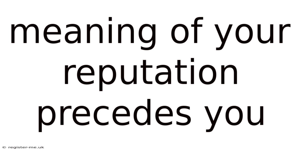 In a world where word travels fast and first impressions matter enormously, understanding the meaning of "your reputation precedes you" isn't just interesting—it's essential for navigating life wisely.