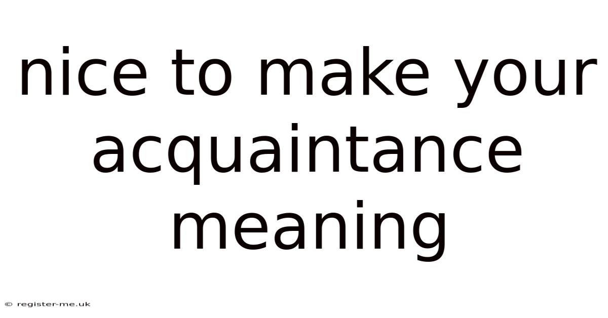 nice to make your acquaintancemeaning is a phrase that often appears in formal introductions, business correspondence, and polite conversation. When someone says “It’s nice to make your acquaintance,” they are expressing genuine pleasure at finally meeting another person, and the underlying meaning conveys respect, warmth, and a desire to establish a positive connection. This article explores the full semantic landscape of the expression, its historical roots, practical usage across contexts, related phrases, cultural nuances, and common pitfalls, providing a thorough look for anyone who wants to use the phrase correctly and confidently Less friction, more output..