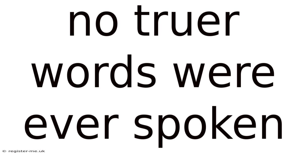 Theweight of truth carries an undeniable resonance when spoken with conviction. We've all encountered moments where someone's words struck us with such profound accuracy that they seemed to crystallize an unspoken understanding. Plus, its usage often follows a statement that cuts through ambiguity, revealing a core reality that resonates on a fundamental level. Even so, understanding this phrase requires delving into its meaning, its historical context, its psychological impact, and its enduring place in our linguistic landscape. But phrases like "no truer words were ever spoken" capture this powerful sentiment, serving as a verbal nod to the undeniable correctness or deep insight conveyed. This expression transcends mere agreement; it acknowledges a moment of intellectual or emotional clarity that feels universally acknowledged and irrefutably true. Let's unpack the layers of this compelling declaration of truth Worth keeping that in mind. But it adds up..