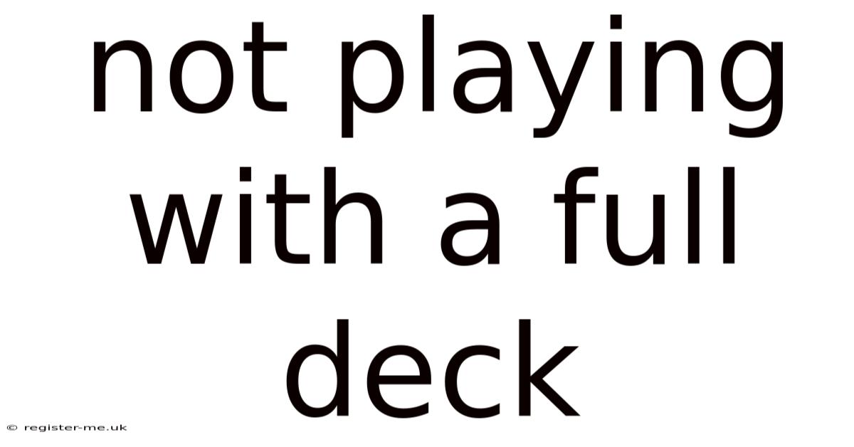 The phrase “not playing with a full deck” is a vivid, colloquial idiom used to suggest that someone lacks intelligence, common sense, or mental stability. Worth adding: while often employed in casual, sometimes humorous, conversation, the expression carries significant weight, touching on deep-seated societal attitudes toward cognitive ability, mental health, and the very language we use to describe human variation. It implies a deficiency, as if the person’s mind is missing essential components, much like a deck of cards with several cards removed. Understanding its origins, implications, and the science behind cognition reveals why this seemingly simple phrase is both linguistically interesting and socially problematic Simple, but easy to overlook. Practical, not theoretical..