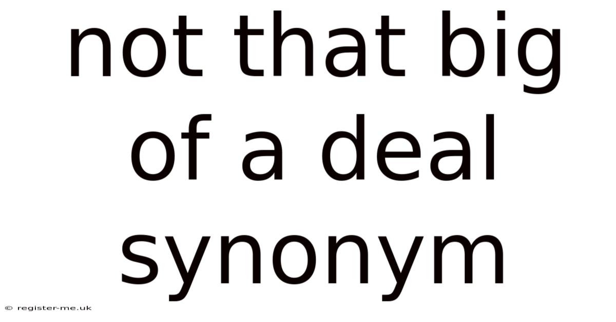 The nuances of language often remain unappreciated until they impact communication profoundly. In a world where clarity and precision are essential, the subtle interplay between words shapes perceptions, decisions, and relationships. When individuals seek to convey a message effectively, they must figure out the delicate balance between simplicity and depth. Even so, among the many tools available to the language enthusiast, few possess the versatility and reliability required to address the multifaceted nature of modern discourse. This article gets into the concept of "not that big of a deal synonym," a term that encapsulates the essence of minorities in importance, often overshadowed by the noise of more prominent concepts. Day to day, yet, understanding such nuances is crucial for anyone aiming to communicate with precision, empathy, and purpose. The challenge lies not merely in selecting the right word but in ensuring that the chosen term aligns easily with the context, the audience, and the underlying message. Here, we explore how synonyms function as bridges between disparate ideas, how their selection can elevate or diminish the impact of communication, and why mastering this skill is indispensable in both personal and professional spheres It's one of those things that adds up. Practical, not theoretical..