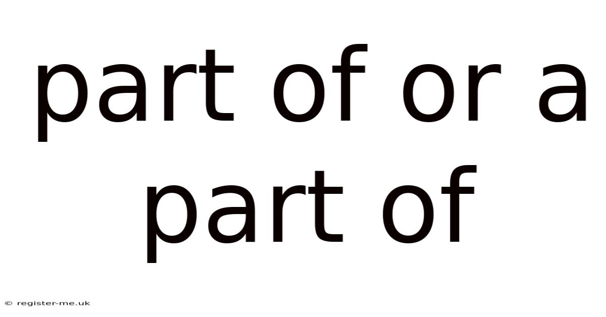 The difference between "part of" and "a part of," while seemingly minor, hinges on the article "a."A part of," however, specifies a distinct, limited, or particular portion of the whole. Understanding when to use each phrase—whether to convey seamless belonging ("part of") or to highlight a specific, possibly detached segment ("a part of")—is crucial for grammatical accuracy and nuanced expression. So " "Part of" denotes general inclusion and integration into a whole, emphasizing belonging and contribution without isolating a specific segment. Think about it: it is the standard, versatile phrase for expressing membership or composition. It draws attention to a fragment, a subset, or an isolated element within the larger entity, often implying partiality or a focus on division. This subtle distinction ensures our language precisely reflects the nature of the relationship between the subject and the collective it describes.