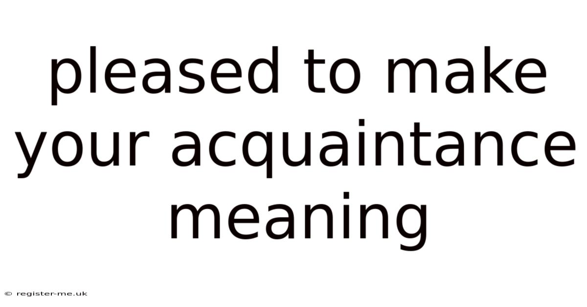 The expression pleased to make your acquaintance meaning encapsulates a blend of politeness, respect, and genuine happiness about meeting someone new. By understanding its nuanced usage, cultural variations, and appropriate responses, you can work through introductions with confidence and professionalism. Whether you are shaking hands at a business conference, greeting a fellow researcher at a symposium, or simply meeting a new neighbor, employing this phrase correctly adds a touch of elegance and warmth to your interactions. Use it thoughtfully, and you’ll find that each new acquaintance becomes an opportunity to build meaningful connections That's the part that actually makes a difference..