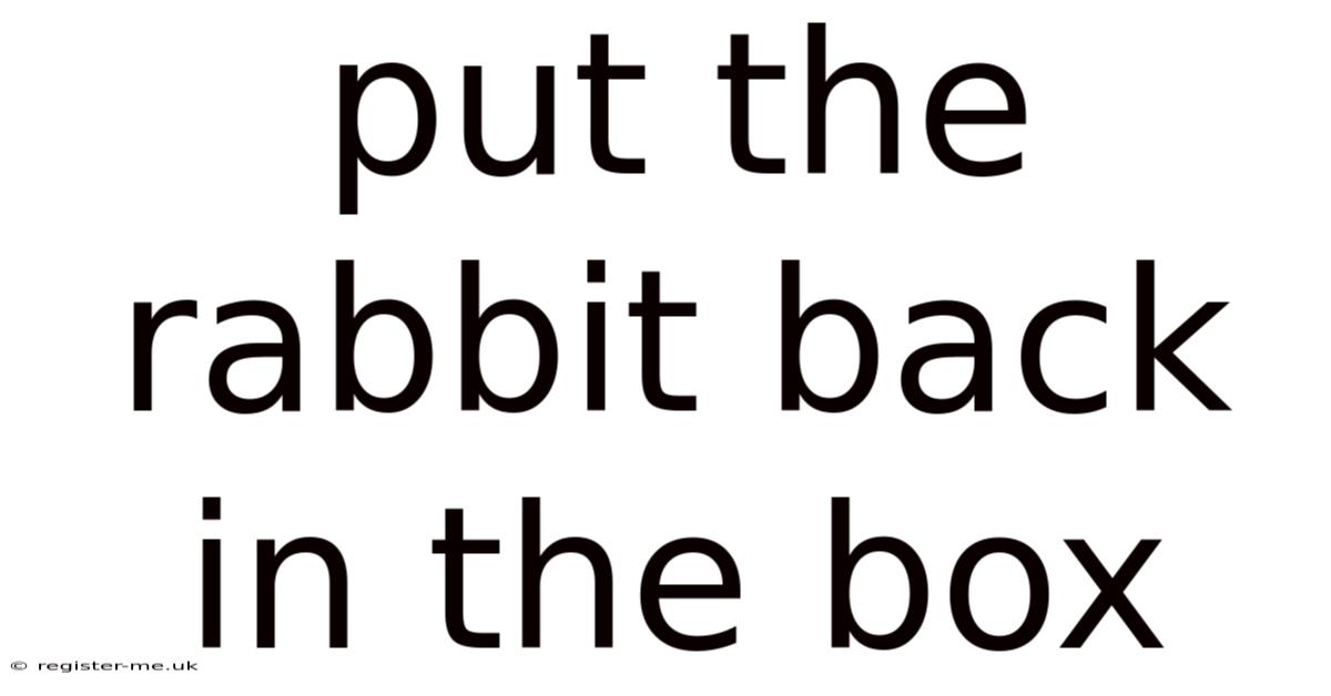 Put the rabbit back in the box is more than a phrase; it is a mental framework for controlling attention, managing uncertainty, and restoring order when chaos feels overwhelming. In modern life, distractions multiply, priorities blur, and pressure builds until small problems feel like emergencies. Now, this concept teaches how to pause, contain disruption, and return focus to what truly matters. By learning to put the rabbit back in the box, individuals gain clarity, reduce stress, and make better decisions under pressure That alone is useful..