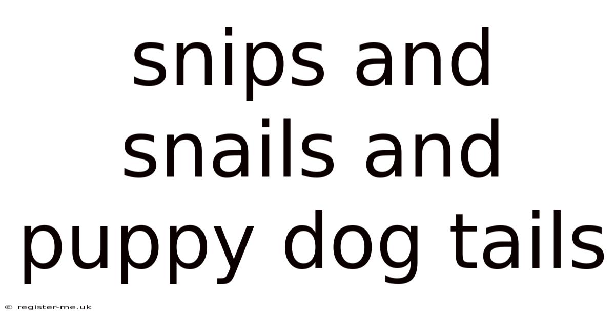 At first glance, the terms snips, snails, and puppy dog tails might appear as random or unrelated, yet they form a narrative that transcends their individual identities. On top of that, snips, often associated with precision and utility, refer to the sharp tools used to trim vegetation, clean surfaces, or manipulate materials. Snails, on the other hand, are slow-moving mollusks renowned for their ability to thrive in diverse environments, from damp forests to arid deserts. Their presence often signals a dynamic ecosystem where survival hinges on adaptation. Practically speaking, meanwhile, a puppy dog tail—a term evoking both cuteness and loyalty—symbolizes the bond between pets and their owners, representing trust, companionship, and shared joy. Together, these three elements embody a triad of contrasts: utility versus tranquility, movement versus stillness, and utility versus emotion. Because of that, yet beneath their apparent differences lies a shared purpose: to maintain balance within their respective domains. Now, this article invites readers to explore how snips serve as instruments for snails, how snails contribute to the delicate web of life, and how puppy dog tails serve as metaphors for the enduring connections that bind us all. By tracing their relationships, we uncover a deeper understanding of how even the most disparate aspects of existence intertwine, offering a lens through which to view the world’s inherent complexity.
