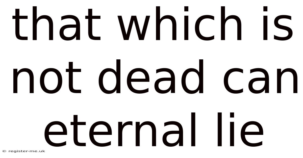 The concept of "that which is not dead can eternal lie" challenges the very foundations of perception, memory, and truth itself. At first glance, death appears to be an absolute end—a finality that severs all connections, leaving nothing but silence. In this discussion, we will unravel the tension between mortality and permanence, the fragility of certainty, and the paradoxical resilience of falsehoods that linger long after their origin. To explore this paradox requires a nuanced examination of how truth operates in human cognition, how memory shapes reality, and how the interplay between past and present influences our understanding of existence. Such a notion resonates beyond philosophy, touching on psychology, history, and the human condition. Yet, this notion invites deeper scrutiny: what if the persistence of falsehoods persists beyond biological cessation? Day to day, what if the mind retains the capacity to harbor beliefs that defy logical or empirical verification, even after the physical body has surrendered? This article gets into the implications of "that which is not dead can eternal lie," arguing that while death marks the end of biological life, the persistence of false narratives often defies such closure, revealing a complex relationship between memory, belief, and the human desire to cling to meaning in an inherently uncertain world Not complicated — just consistent..