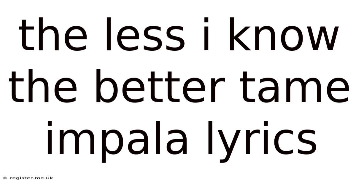 “The Less I Know — the Better” is one of Tame Impalas most iconic tracks, and its lyrics have sparked endless discussion among fans and music analysts. While the song’s dreamy production and infectious bass line instantly grab listeners, it’s the cryptic yet relatable words that keep them coming back for deeper meaning. This article dissects the lyrics line‑by‑line, explores the themes of desire, jealousy, and self‑deception, and explains why the song resonates across generations And that's really what it comes down to. Which is the point..