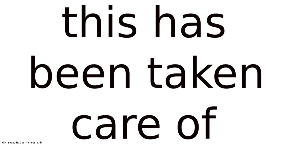 Understanding the phrase "this has been taken care of" begins with recognizing its implications. Day to day, at its core, it communicates that a situation has been handled, a problem solved, or a duty fulfilled. Even so, this can apply to a wide range of scenarios—from completing a work project and resolving a customer complaint to managing household chores or addressing personal conflicts. The key is that the matter is considered resolved, and those involved can move forward without lingering concerns Most people skip this — try not to..