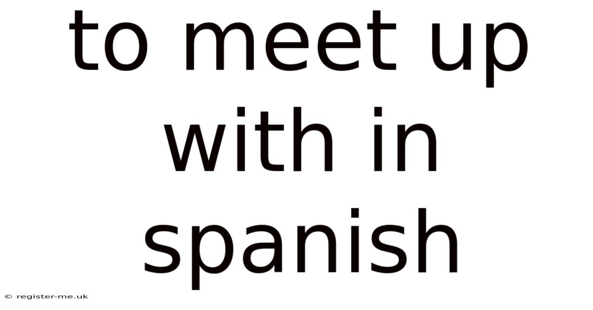 Mastering how to say "to meet up with" in Spanish opens the door to more natural and fluent conversations. Whether you’re using "encontrarse con" for casual encounters or "reunirse con" for formal gatherings, understanding the nuances of these verbs will help you communicate more effectively The details matter here..