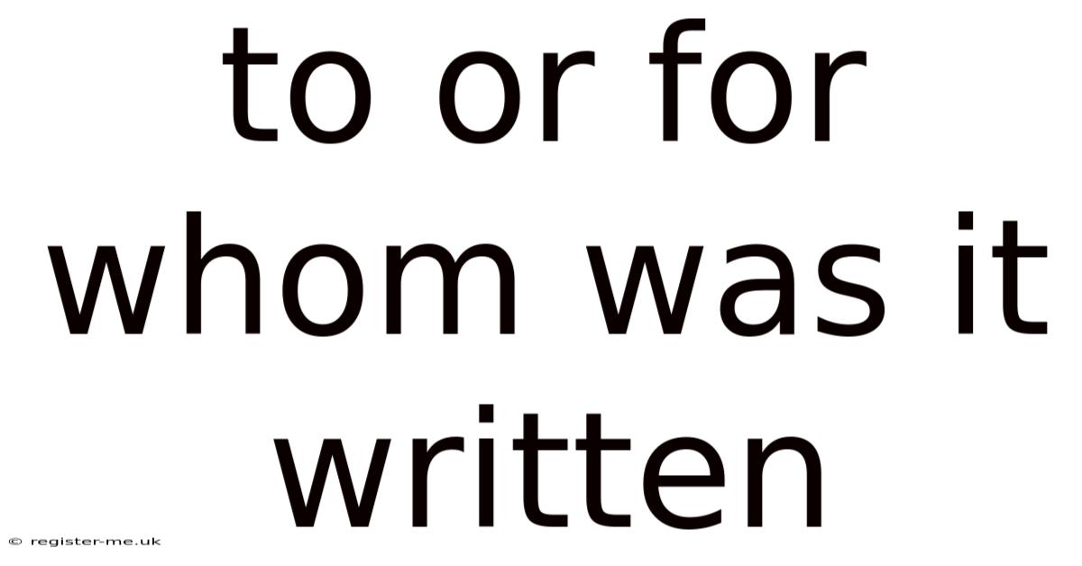 Mastering the question to or for whom was it written transforms vague writing into purposeful communication. By scrutinizing language style, structural cues, and contextual signals, creators can pinpoint their readership with surgical precision. This alignment not only boosts SEO performance through keyword relevance but also fosters a genuine emotional connection, as the audience feels seen and understood. At the end of the day, the answer to this question is the bridge between a message and its most receptive listeners, ensuring that every word serves a clear, compelling purpose Small thing, real impact..