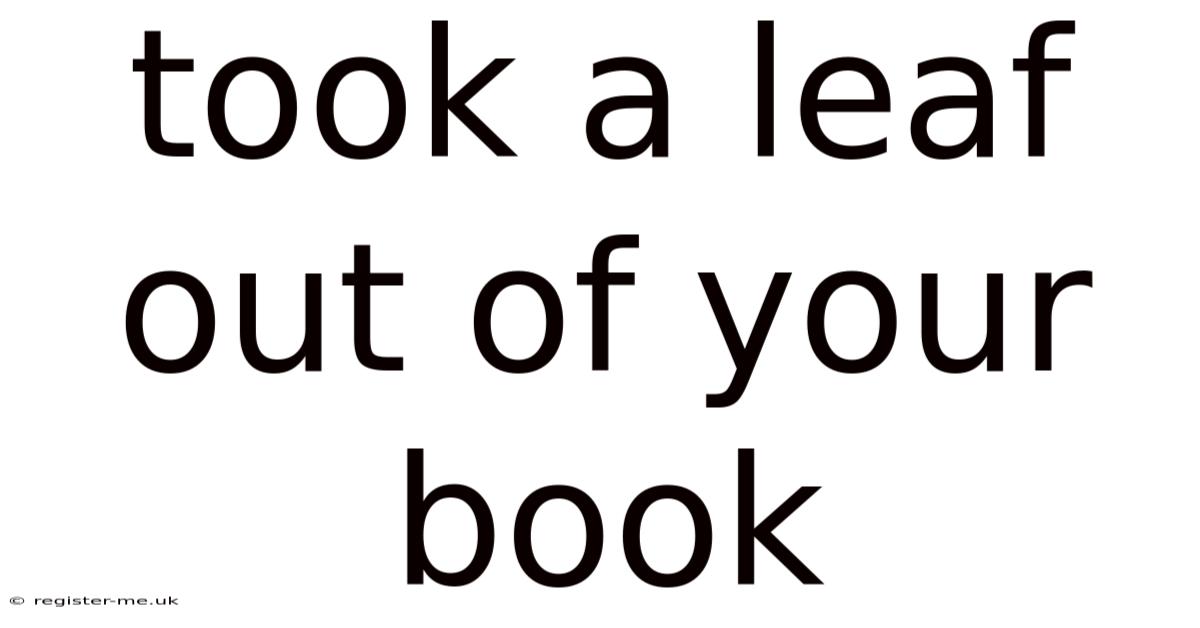 This idiom appears in various contexts, from business meetings to casual conversations. In real terms, for instance, a manager might tell an employee, "I took a leaf out of your book when dealing with that difficult client," indicating they've adopted the employee's successful approach. Similarly, a friend might say, "I've been taking a leaf out of your book with my exercise routine," showing they're imitating the friend's healthy habits Most people skip this — try not to. Nothing fancy..