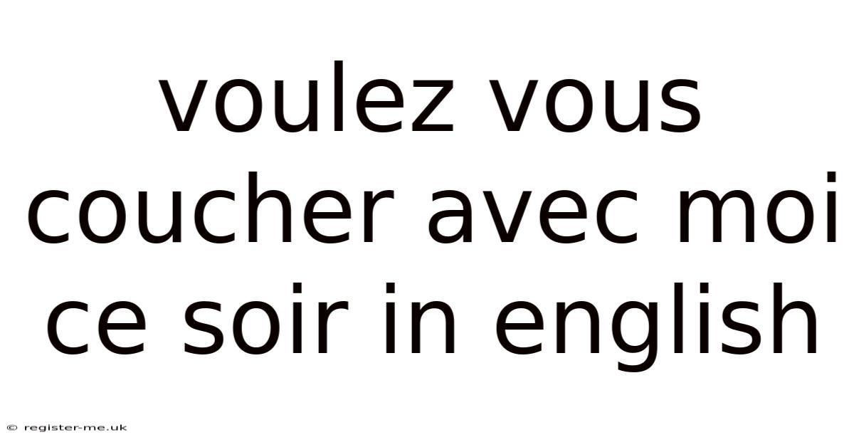 "Voulez-vous coucher avec moi ce soir?" is a phrase that has intrigued and puzzled many English speakers. Still, translated directly, it means "Do you want to sleep with me tonight? Think about it: " This expression, often associated with French culture, has made its way into popular culture, particularly in music and film. Its usage and implications have evolved over time, making it a fascinating topic to explore.