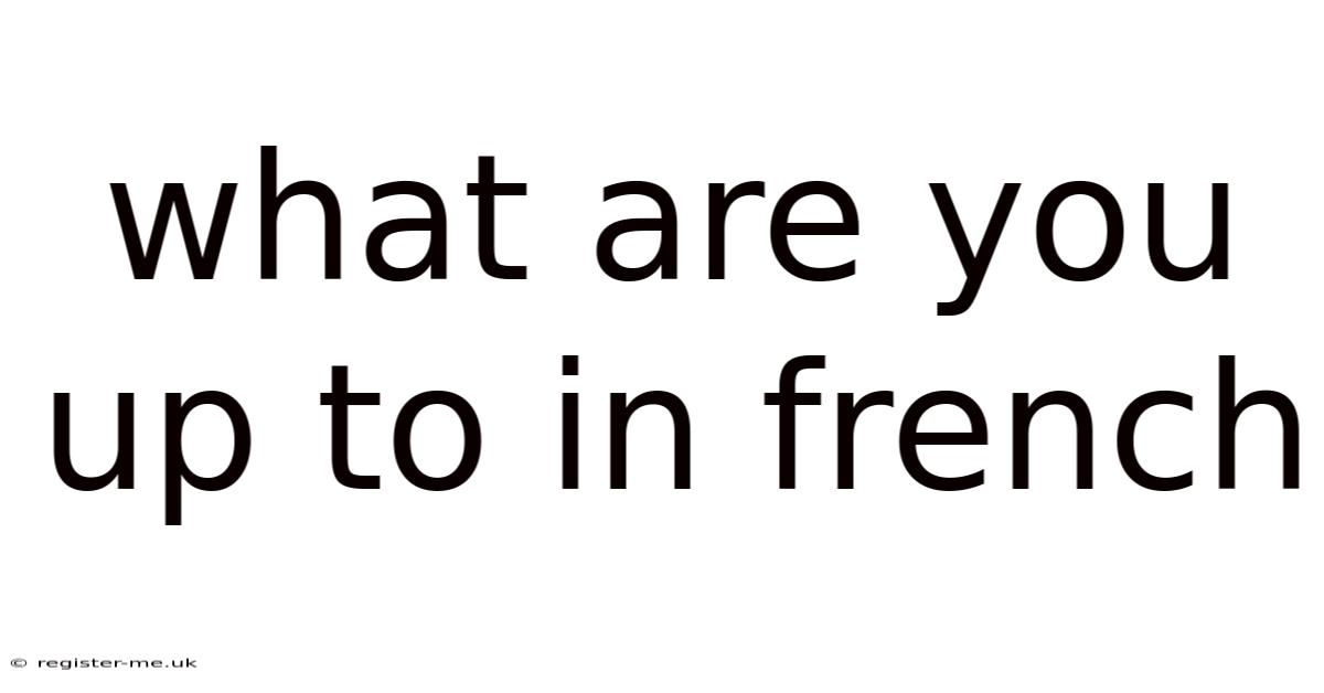 What Are You Up To in French? A Guide to Mastering This Essential Phrase