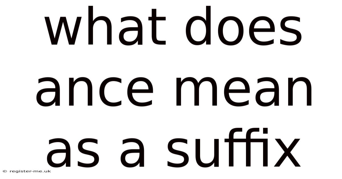 What does "-ance" indicate in a word? The suffix "-ance" typically transforms a verb into a noun indicating the state, quality, act, or result of the action denoted by the verb.