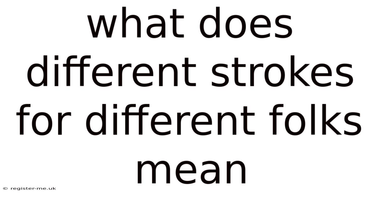 Thephrase "different strokes for different folks" is a widely recognized idiom that encapsulates the idea of individuality and the necessity of adapting to diverse needs, preferences, or circumstances. While the phrase may seem straightforward, its implications are profound, reflecting a deeper understanding of human diversity and the need for flexibility in how we interact with others. On the flip side, its roots may extend further back, as similar expressions have existed in literature and philosophy for centuries. So regardless of its exact origin, the phrase has become a cultural touchstone, resonating with people across generations. On the flip side, the origins of the phrase are often attributed to the 1970s film Different Strokes, where it was used to highlight the contrasting lifestyles of two characters. On the flip side, at its core, it suggests that people are unique in their approaches, values, and methods of achieving success or fulfillment. Think about it: this concept has been popularized in various contexts, from personal relationships to professional environments, and it emphasizes the importance of recognizing and respecting these differences. It serves as a reminder that there is no one-size-fits-all solution to life’s challenges, and that embracing differences can lead to more effective and compassionate outcomes And that's really what it comes down to..
