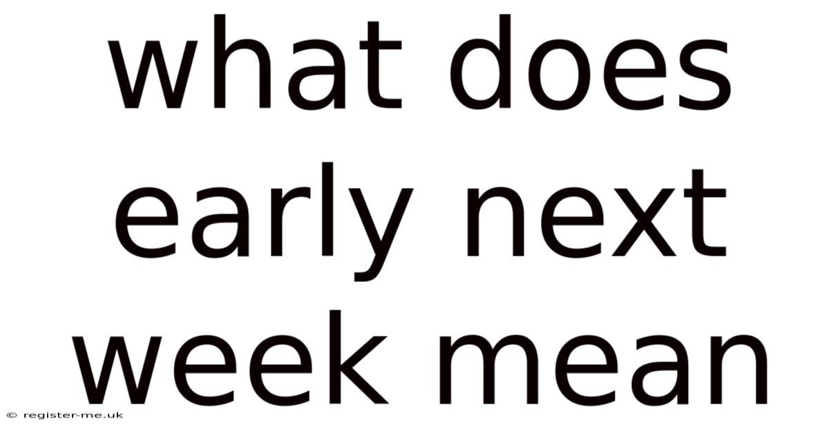 - Some individuals are time-conscious and interpret "early next week" strictly as Monday-Tuesday