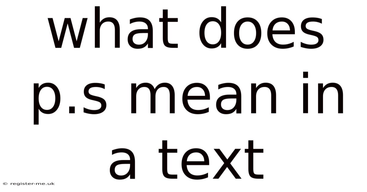The abbreviation "P.S." is a common sight in written communication, yet its significance and proper usage are often misunderstood. Whether you encounter it in a handwritten letter, an email, or a text message, "P.And s. But " stands for postscript—a term rooted in Latin that has evolved over centuries. But what does P.S. That's why mean in a text? This article gets into the origins, modern applications, and cultural relevance of this abbreviation, offering a clear understanding of its role in both formal and informal contexts.