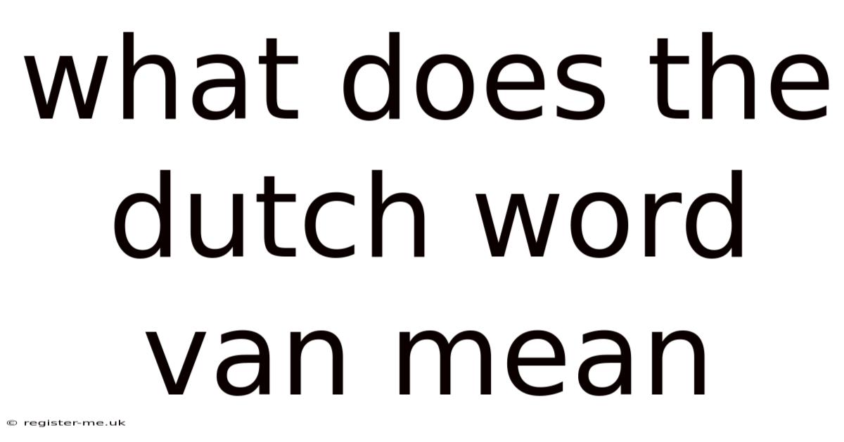 What Does the Dutch Word Van Mean: A Comprehensive Exploration of Its Origins, Uses, and Cultural Significance