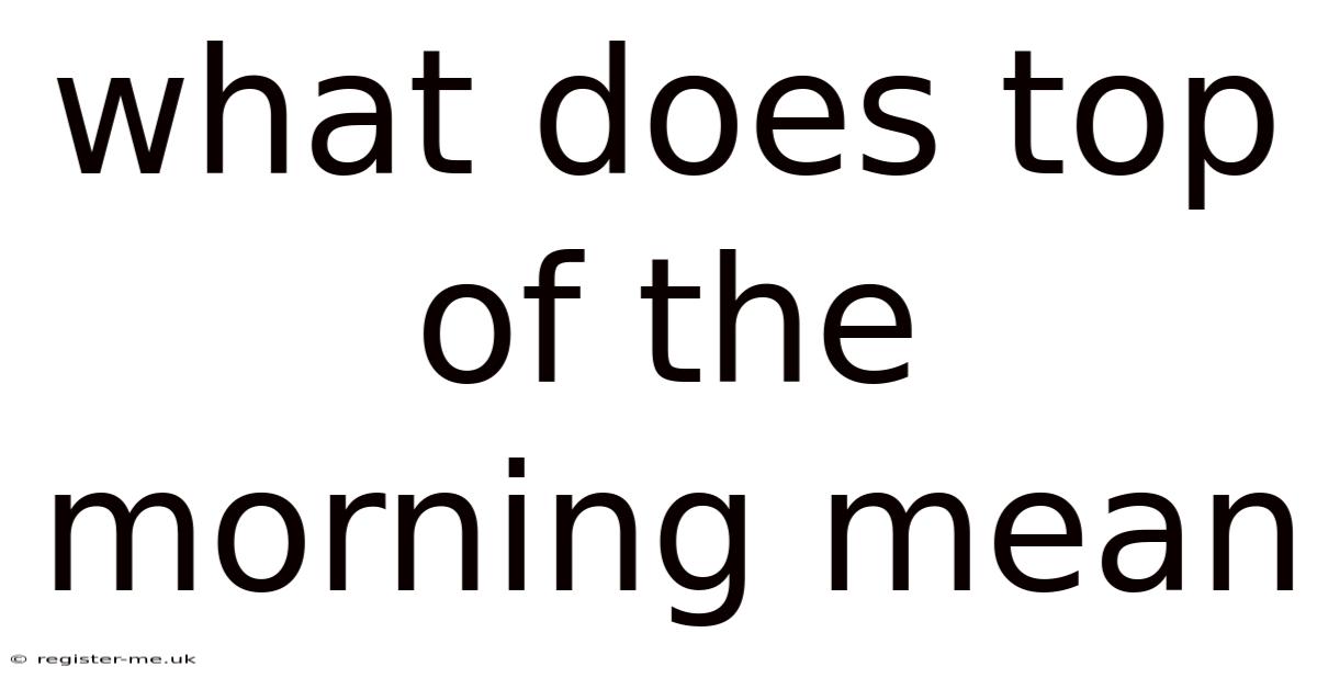 The phrase top of the morning is a curious and somewhat enigmatic expression that has lingered in the English language for decades. In real terms, at first glance, it might seem like a simple way to refer to the beginning of the day, but its true meaning and usage extend far beyond that. This article explores the nuances of top of the morning, its historical roots, how it is employed in modern contexts, and why it continues to resonate with people today. Whether you’ve heard it in a song, a conversation, or a literary work, understanding this phrase can offer insight into the playful and sometimes poetic ways language evolves.