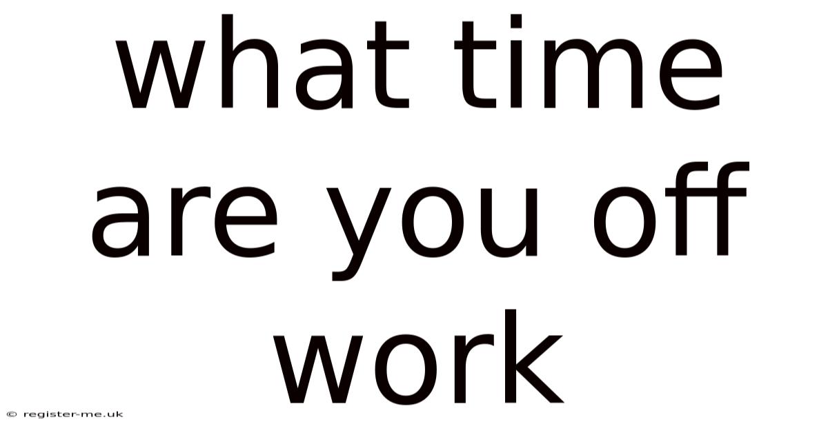 When someone asks, “What time are you off work?Also, for many, knowing when they are off work is essential for planning family time, hobbies, or other commitments. It depends on factors like employment type, industry, location, and individual work agreements. ” they are typically seeking clarity about your availability, work hours, or personal time. This question is more than just a casual inquiry; it reflects the need to understand the structure of one’s workday, the boundaries between professional and personal life, and how time is allocated in a job. Even so, the answer to this question is not always straightforward. This article explores the nuances of work schedules, the importance of knowing your off time, and how to figure out this aspect of employment effectively Worth knowing..