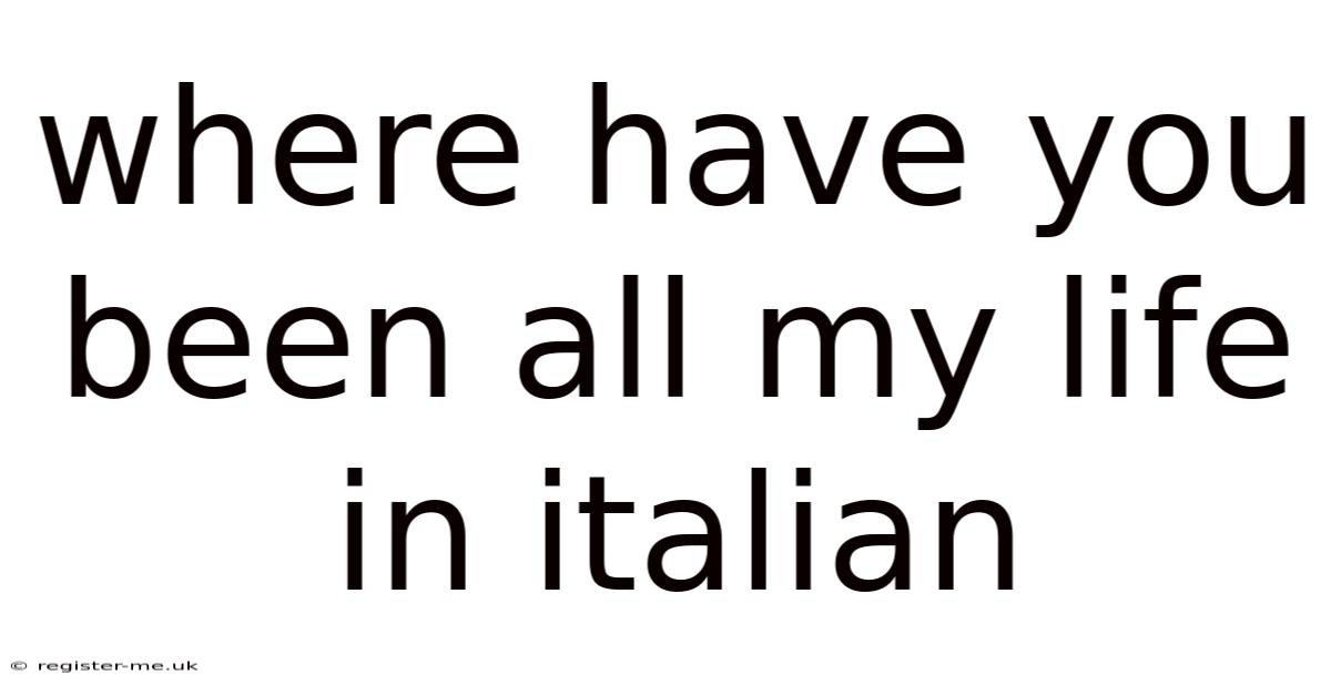 "Where have you been all my life" in Italian, "Dove sei stato tutto questo tempo?" or "Dove sei stata tutta la vita?" is a phrase that captures the essence of deep emotional connection and appreciation. Whether used in a romantic, friendly, or professional context, it conveys a sense of wonder and gratitude for someone who has made a significant impact on your life. The Italian language, with its poetic and expressive nature, provides the perfect medium for such a heartfelt expression. So, the next time you meet someone special or discover something amazing, don't hesitate to use this phrase to express your feelings. After all, life is too short not to let the people and experiences that matter know how much they mean to you Not complicated — just consistent..