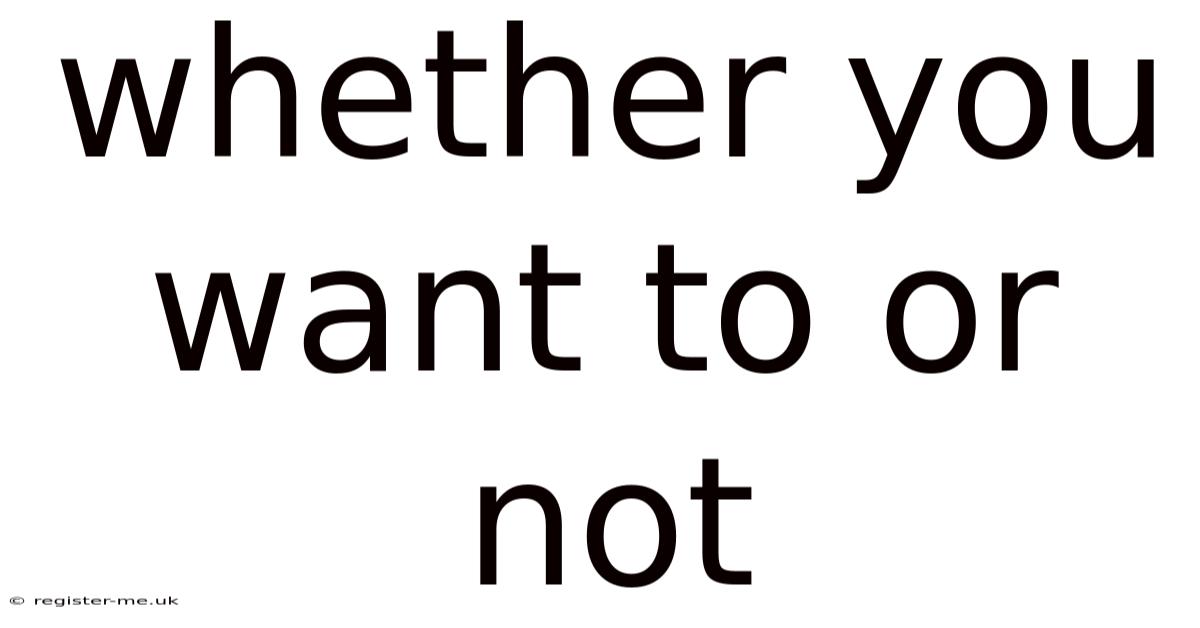 Whether you want to or not, the concept of choice is a fundamental aspect of human existence. The idea that "whether you want to or not" encapsulates a paradoxical tension between autonomy and determinism, a theme that resonates deeply in psychology, philosophy, and everyday life. This article explores the complexities of decision-making and the illusion of free will, challenging readers to reflect on how often we believe we have control over our lives while simultaneously being influenced by external factors. By examining this topic, we can gain insight into why some decisions feel inevitable and others seem entirely within our grasp.